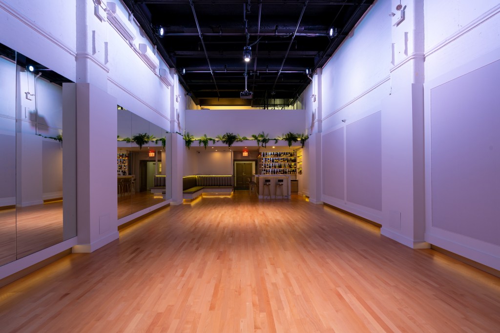 Formerly the Davenport Theater, the now, newly transformed space is super chic with 20 ft. ceilings, polished hardwood floors, mirrors, a marble stylish bar, lounge area, and private changing rooms.